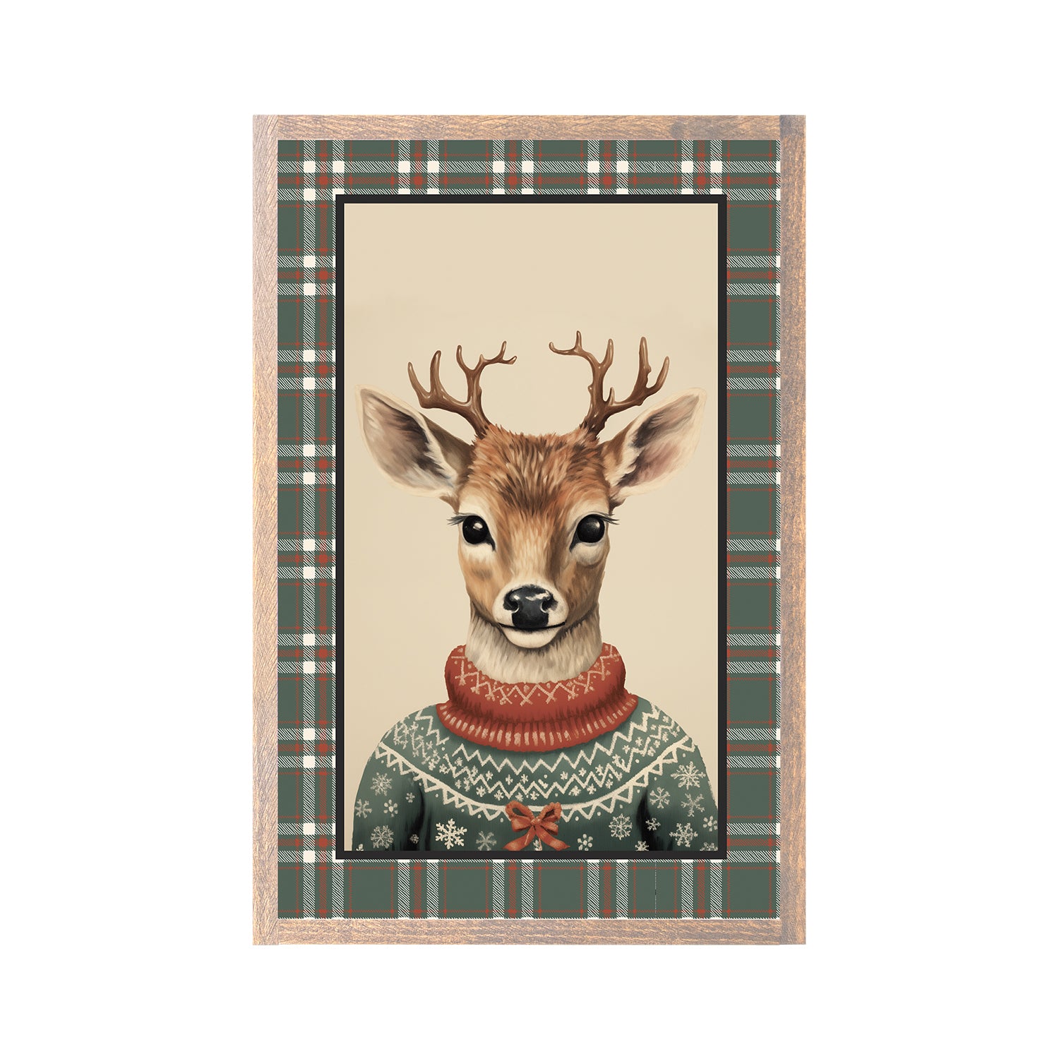 Nothing says "whimsical holiday" like a deer in a Christmas sweater! You are sure to invite extra smiles in your home with our festive deer portrait, Oh Deer. A plaid border adds to the feeling of tradition and nostalgia, making this a piece you will love pulling back out year after year.