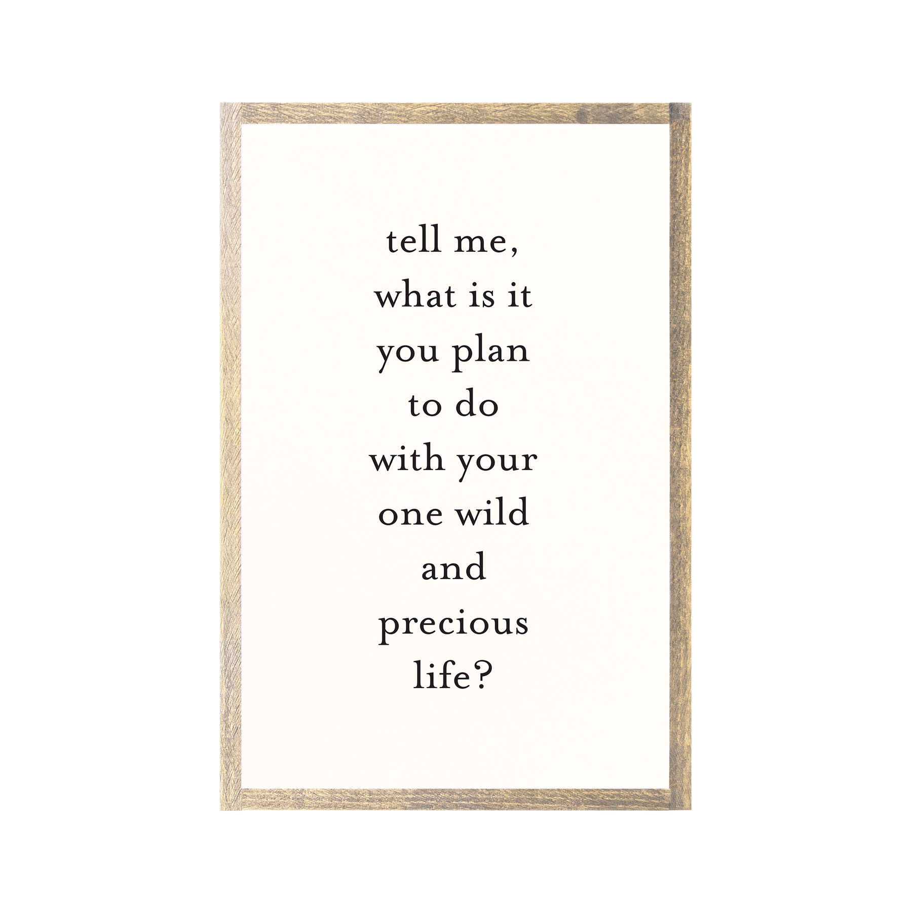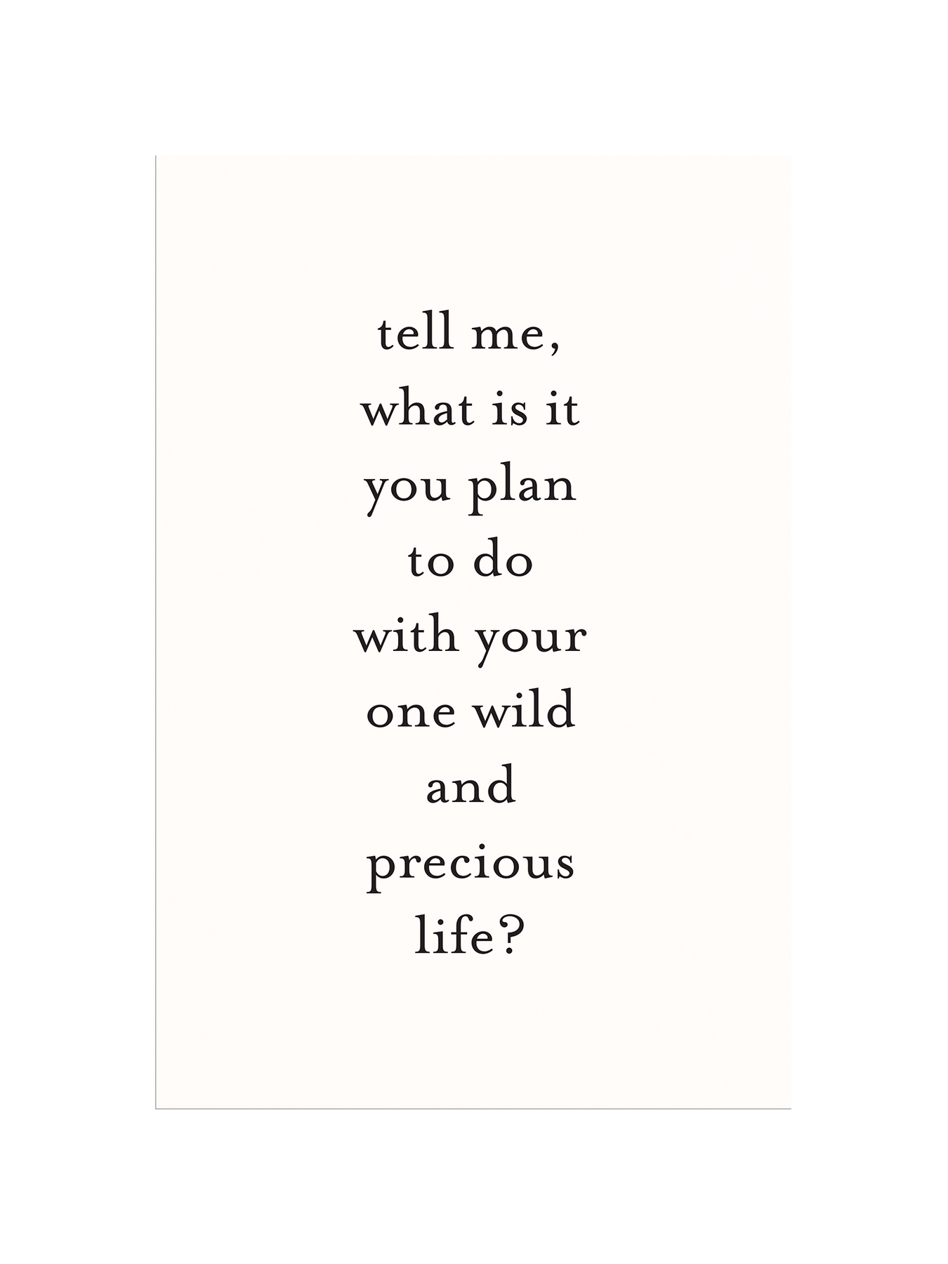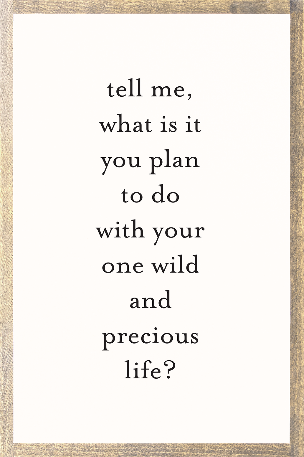 "Tell me, what is it you plan to do with your one wild and precious life?" Written by Mary Oliver