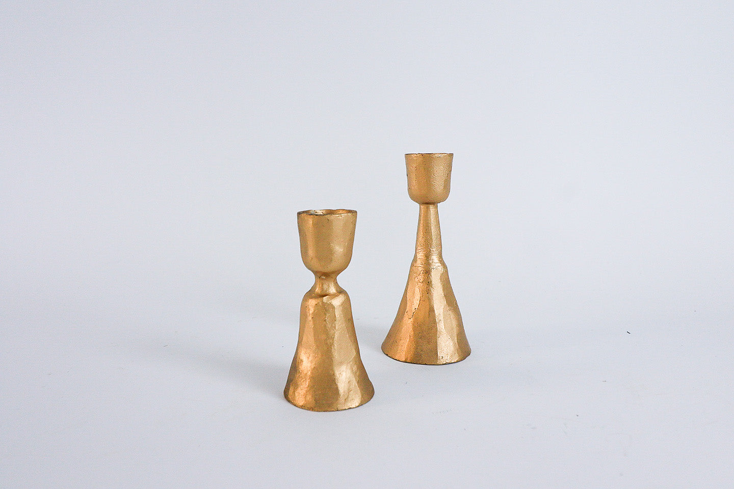 Add a touch of timeless elegance with the Luna Candle Holders. Crafted from metal with a hand-hammered gold finish, this duo (3.75" and 4.5" tall) brings warmth and subtle shine to any mantel, table, or shelf—perfect for everyday styling or festive gatherings.